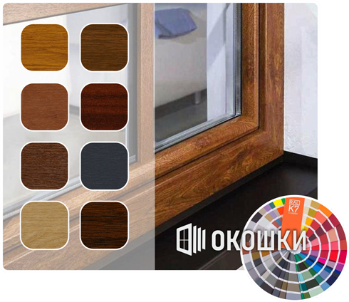 Ламинация оконного профиля и широкий выбор фактур, не отличимых от натурального дерева, позволяют создавать индивидуальный дизайн помещений и воплотить даже самые необычные идеи. Также возможна окраска окон в различные цвета (по палитре RAL)